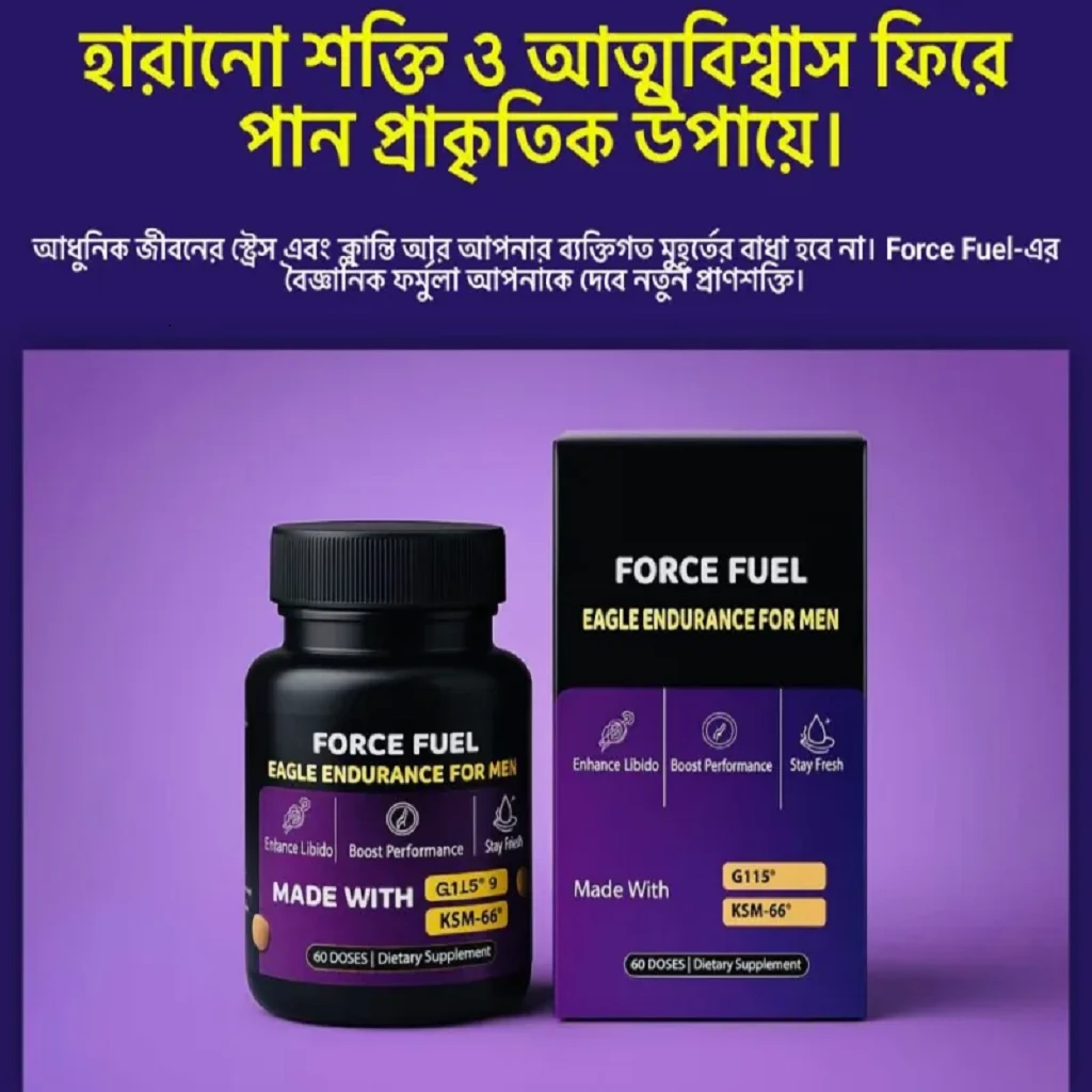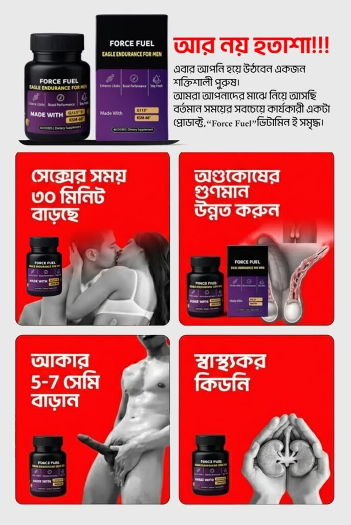 আর নয় হতাশা!!! এবার আপনি হয়ে উঠবেন একজন শক্তিশালী পুরুষ। আমরা আপনাদের মাঝে নিয়ে আসছি বর্তমান সময়ের সবচেয়ে কার্যকারী একটা প্রোডাক্ট, Force Fuel ভিটামিন ই সমৃদ্ধ।